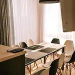 Vip Sky Apartment includes a balcony and a dressing room appointed with an ironing set and air conditioning, as well as modern facilities like a flat-screen TV with satellite channels. Sound-proofed windows, along with a sofa set and a writing table, ensure a more enjoyable stay. Beds fitted with down-feather pillows are at guests' disposal. Enhancing your comfort, a tub, a walk-in shower, and a separate toilet can be found at this apartment. Moreover, there are a dryer and towels as well.